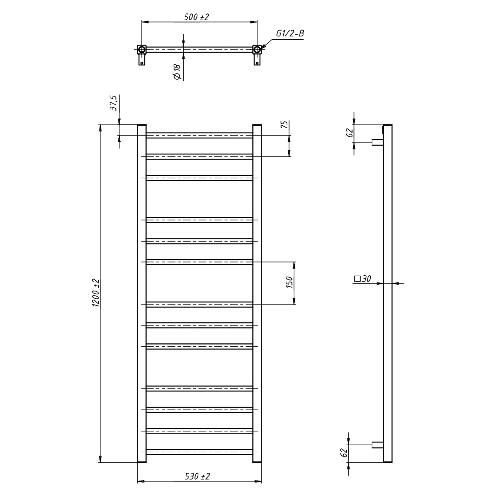 - Размер полотенцесушителя 53х120 см