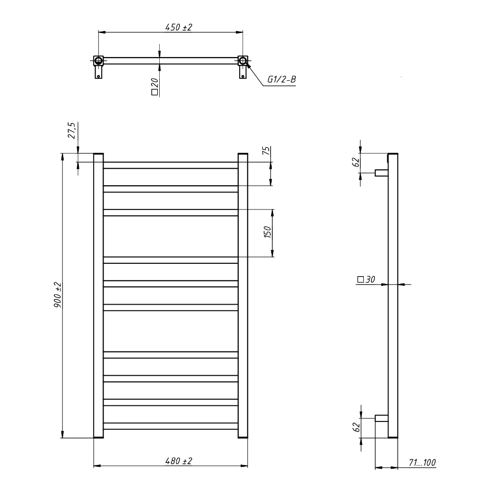 Полотенцесушитель электрический Grota Estro PS-ESTRO-480*900-elektr/SGTR1N-300W 48x90 см