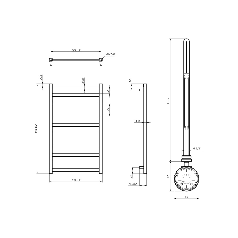 Полотенцесушитель электрический Grota Vento PS-VENTO-530*900-el.chern/MOA-300W 53x90 см