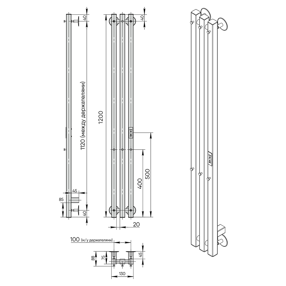 Оснащение : полотенцесушитель; комплект креплений; инструкция.