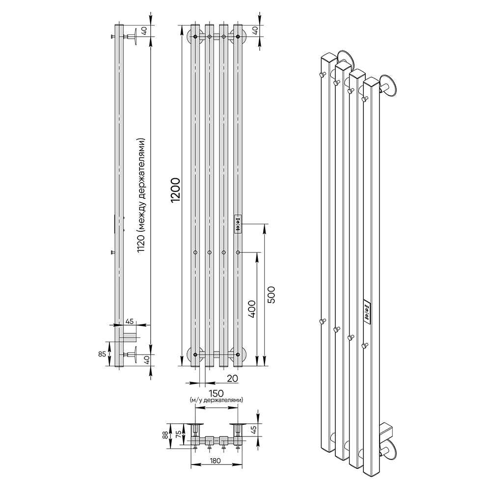 Оснащение : полотенцесушитель; комплект креплений; инструкция.