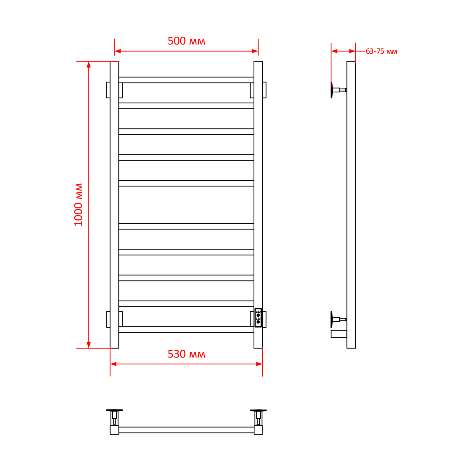 - Размер полотенцесушителя 53х100 см