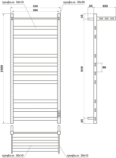 - Размер полотенцесушителя 53х100 см