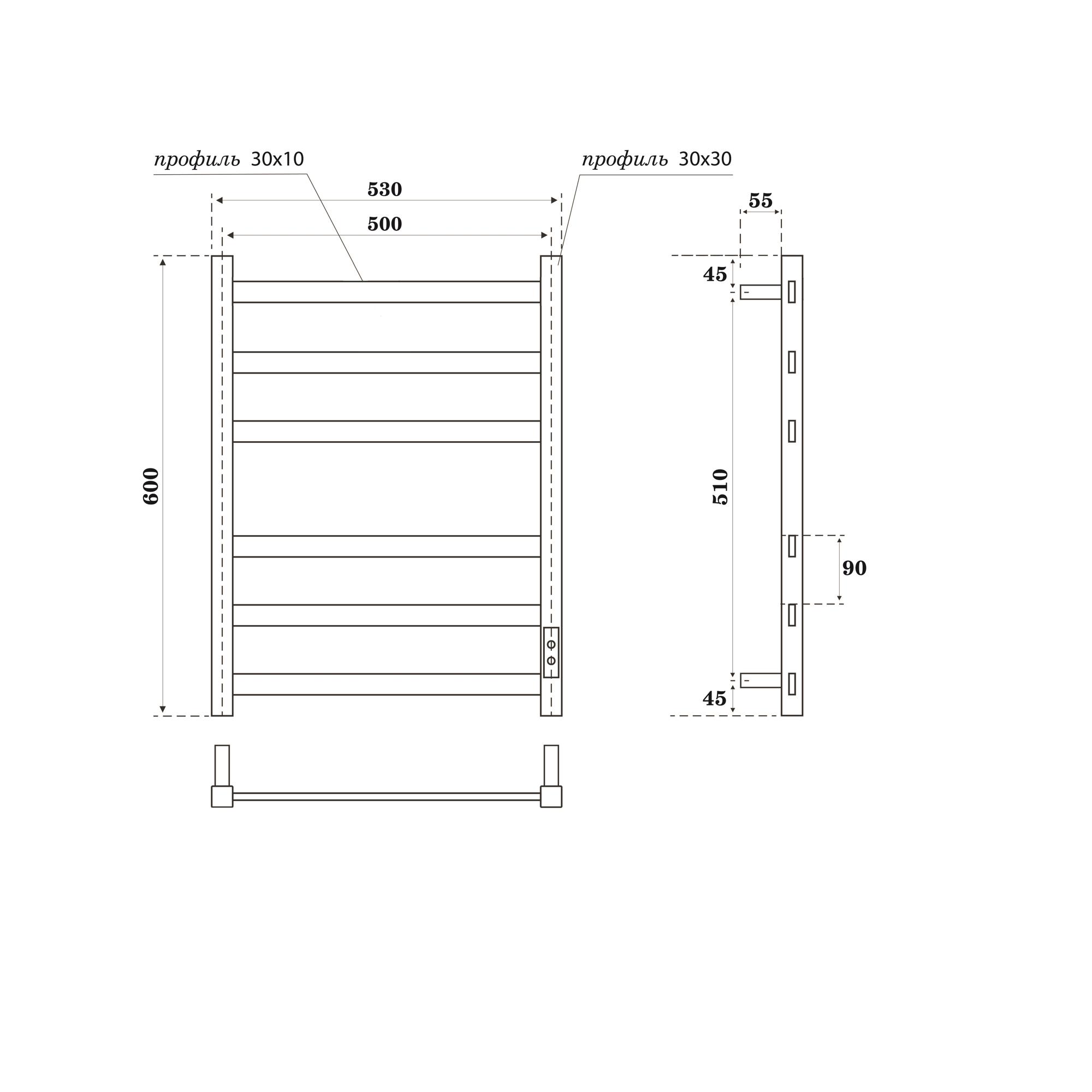 Полотенцесушитель электрический Point Меркурий П6 PN83856GR 50х60 см