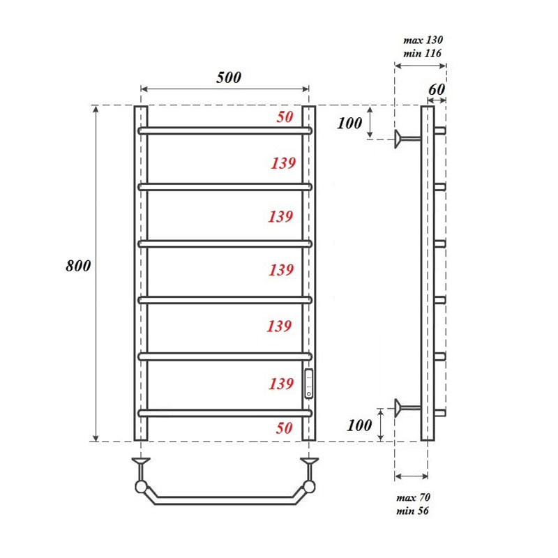 Полотенцесушитель электрический Point Виктория П6 PN06858 50х80 см