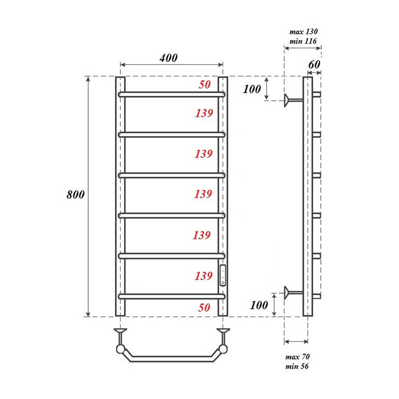 - Размер полотенцесушителя 43,2х80 см