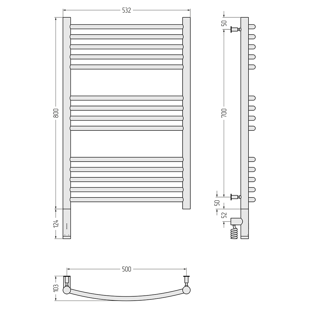Оснащение : полотенцесушитель; блок управления с кабелем; шестигранный ключ; комплект креплений; инструкция.