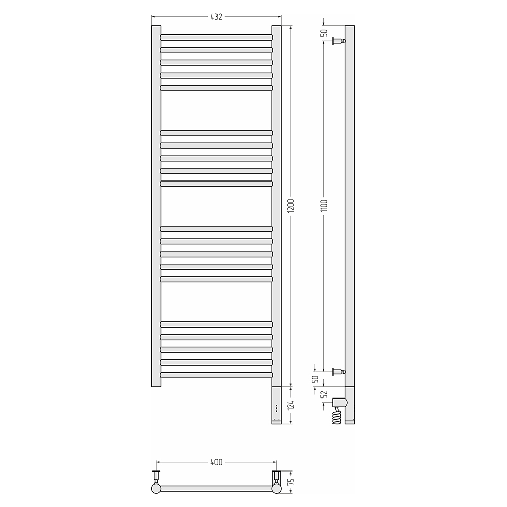 - Размер полотенцесушителя 43,2х132,4 см