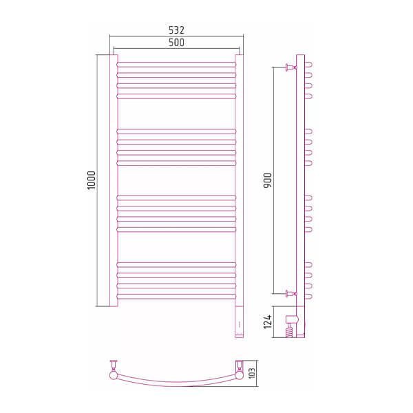 - Размер полотенцесушителя 53,2х112,4 см