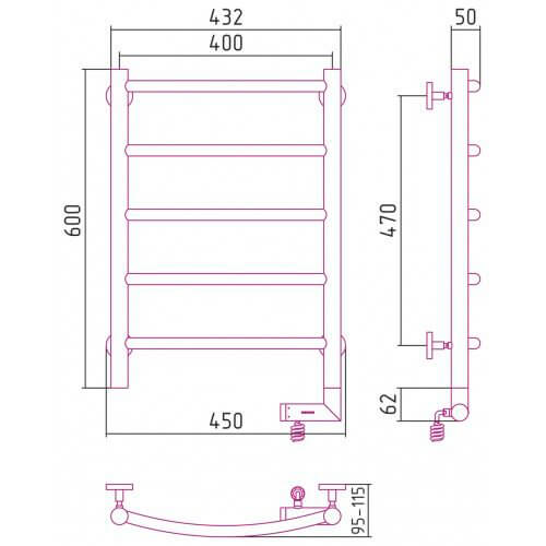 Оснащение : Полотенцесушитель, блок управления с кабелем, телескопические кронштейны, шестигранный ключ, дюбели и саморезы. Приобретается отдельно: модуль скрытого подключения для мэм d 28 мм