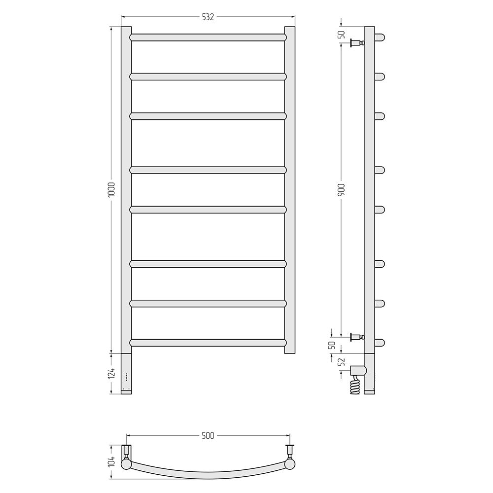 - Размер полотенцесушителя 53,2х112,4 см