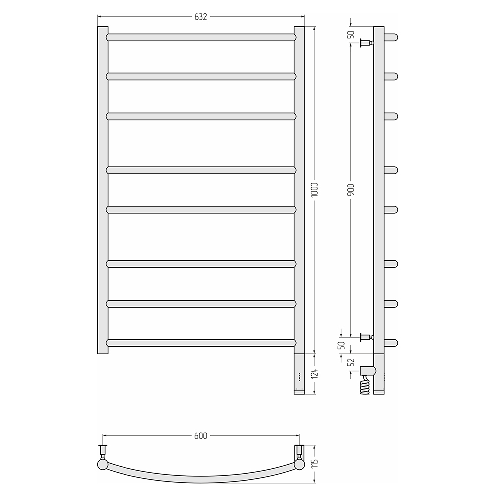 Оснащение : Полотенцесушитель, блок управления с кабелем, интегрированное в корпус скрытое подключение, телескопические кронштейны, шестигранный ключ, дюбели и саморезы