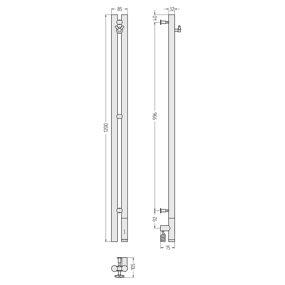 Оснащение : Полотенцесушитель, блок управления с кабелем, интегрированное в корпус скрытое подключение, вешалка «виктория», телескопические кронштейны, шестигранный ключ, дюбели и саморезы