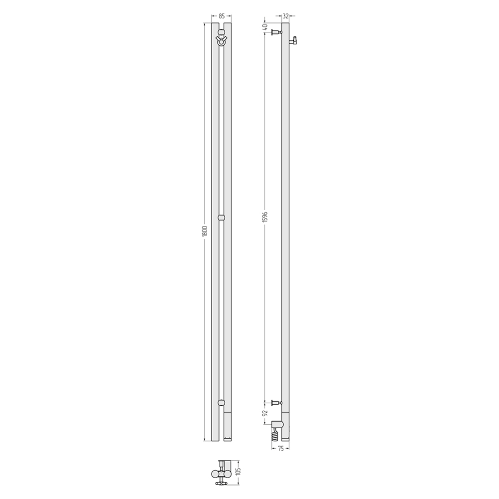 Оснащение : Полотенцесушитель, блок управления с кабелем, интегрированное в корпус скрытое подключение, вешалка «виктория», телескопические кронштейны, шестигранный ключ, дюбели и саморезы