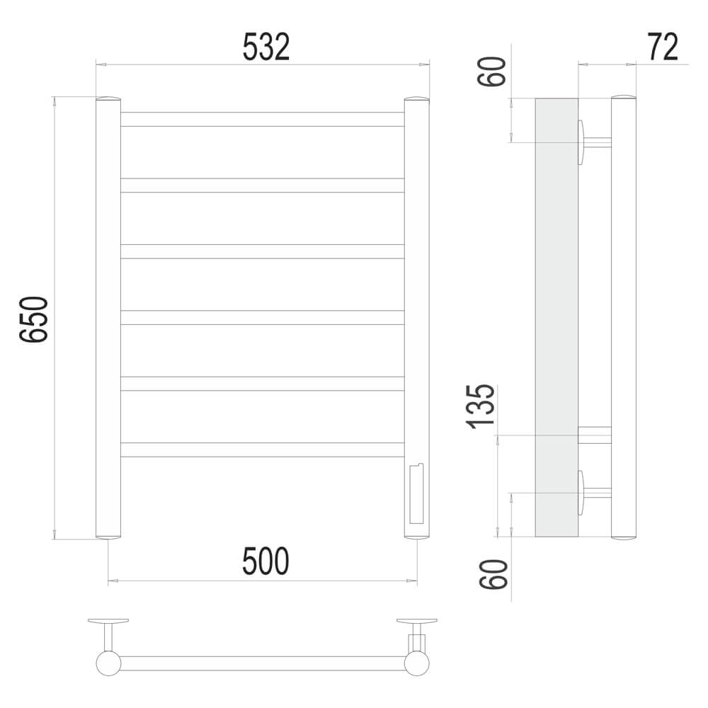 - Размер полотенцесушителя 53,2х65 см