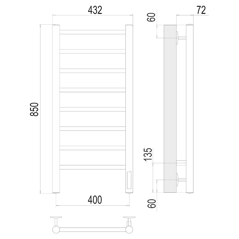 - Размер полотенцесушителя 43,2х85 см