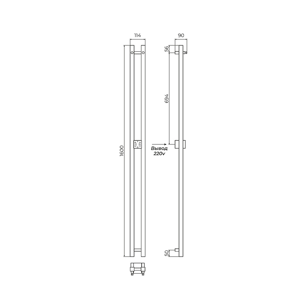Полотенцесушитель электрический Terminus Дуо 4670078528377 11x160 см