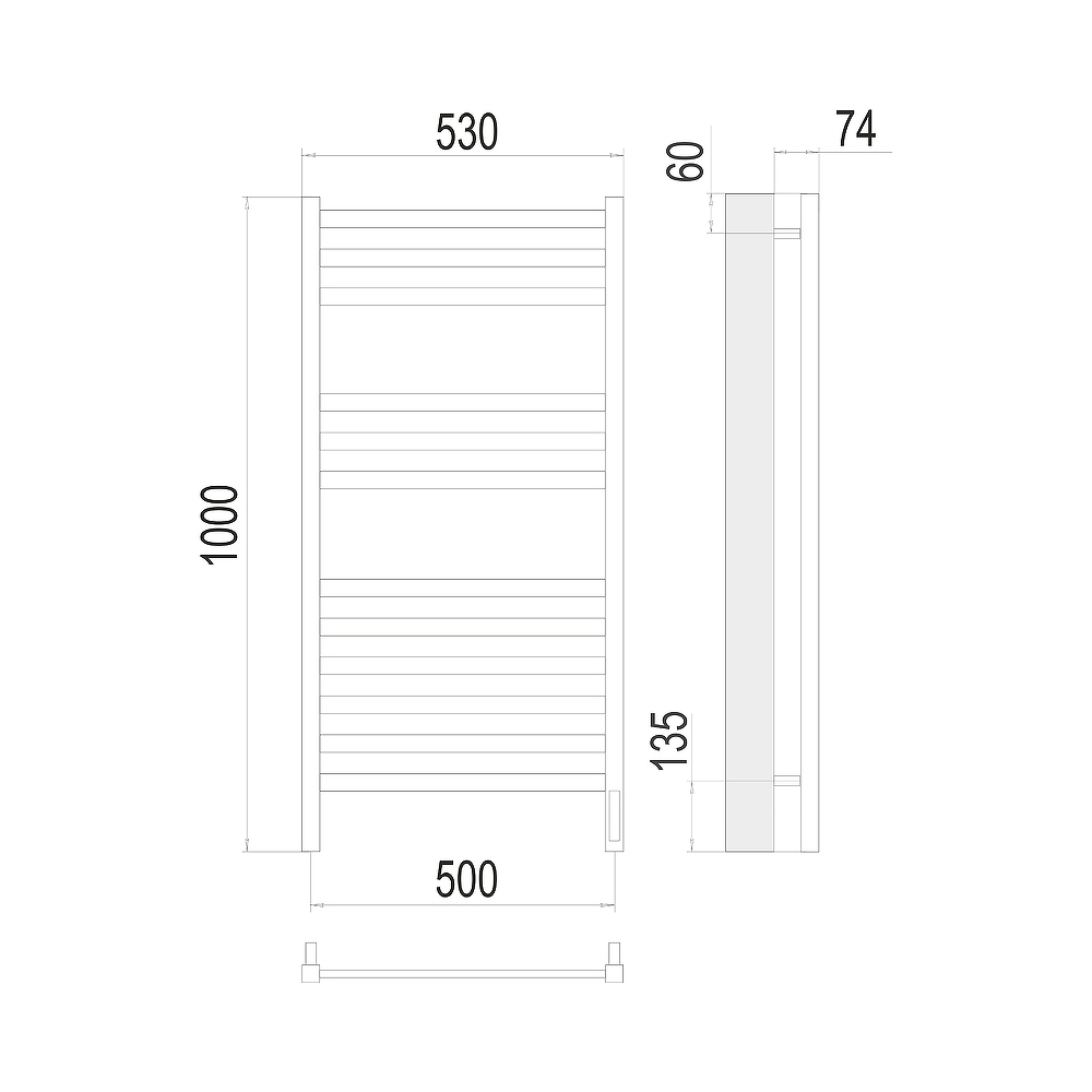 - Размер полотенцесушителя 53х100 см