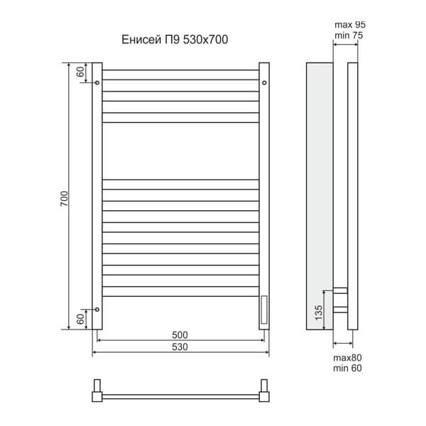 Полотенцесушитель электрический Terminus Енисей П9 4670078526281 50х70 см