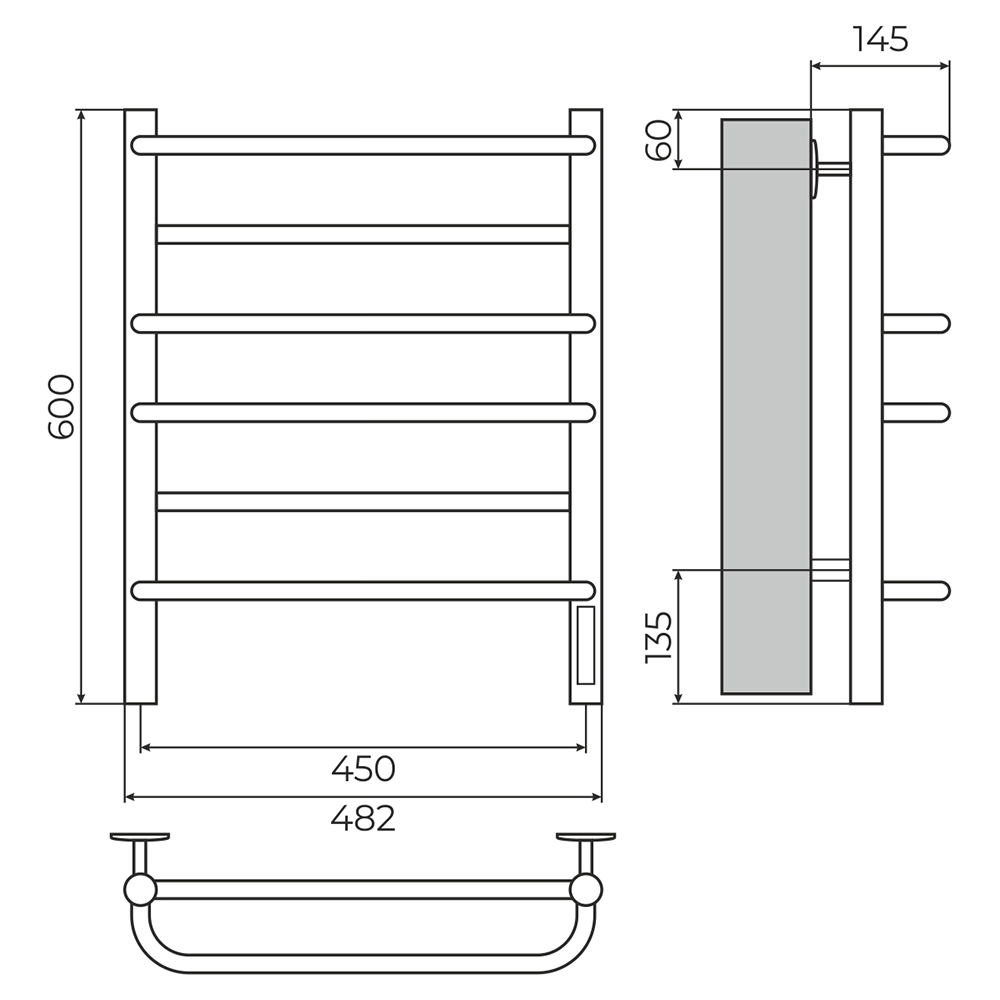 - Размер полотенцесушителя 48,2х60 см