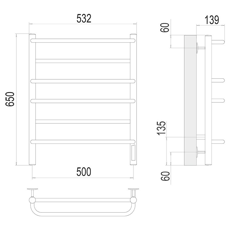 - Размер полотенцесушителя 53,2х65 см