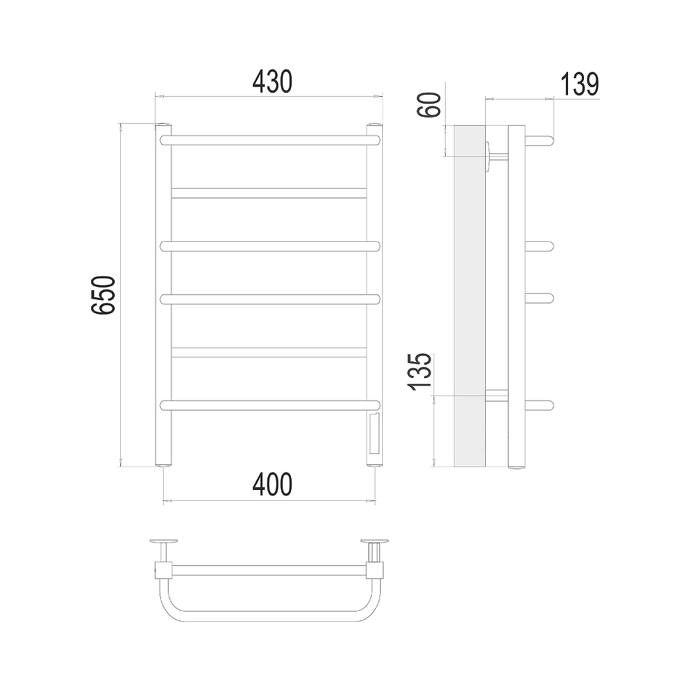 - Размер полотенцесушителя 43х65 см