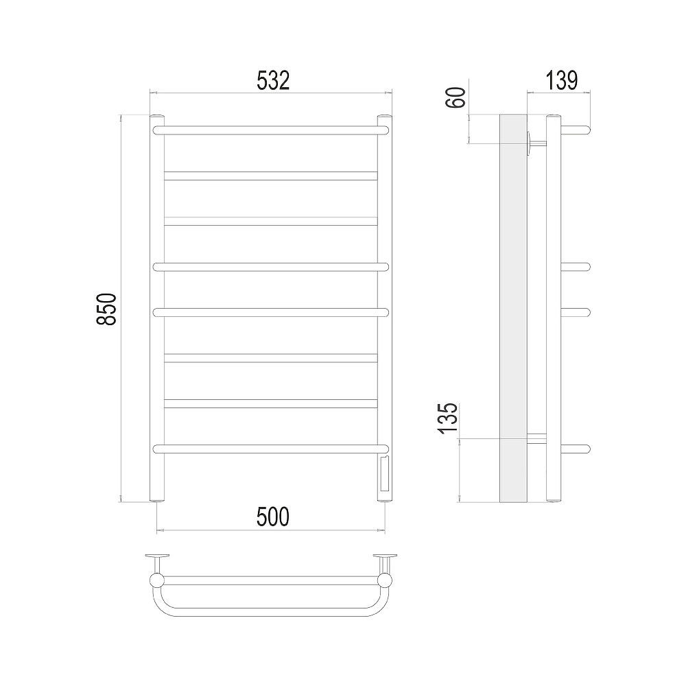 Оснащение : полотенцесушитель; телескопическое крепление; модуль скрытого подключения; съемный кабель; инструкция.
