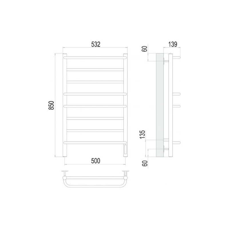 - Размер полотенцесушителя 53,2х85 см
