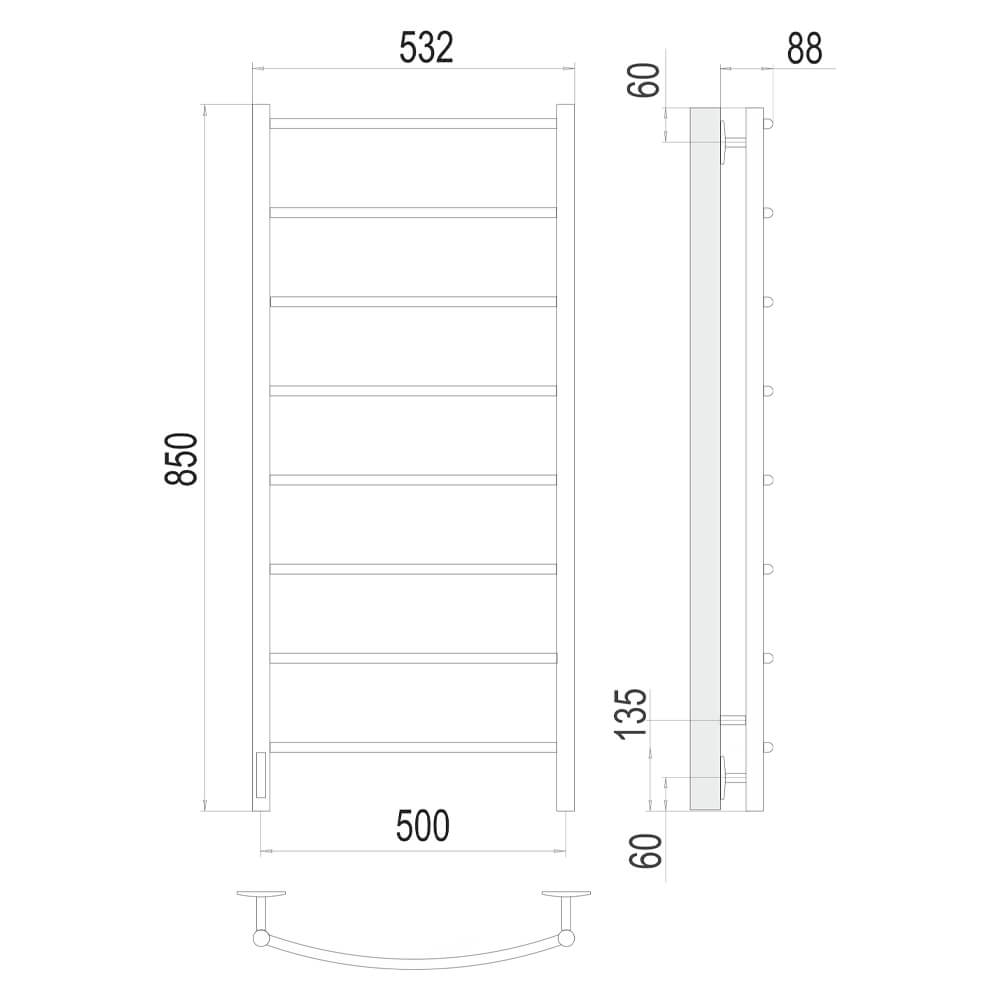 - Размер полотенцесушителя 53,2х85 см