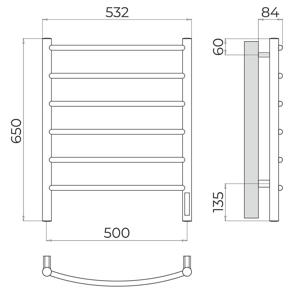 - Размер полотенцесушителя 53,2х65 см