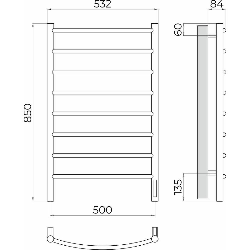 - Размер полотенцесушителя 53,2х85 см
