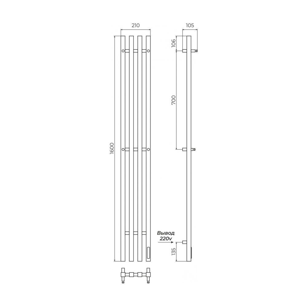 - Размер полотенцесушителя 21х160 см