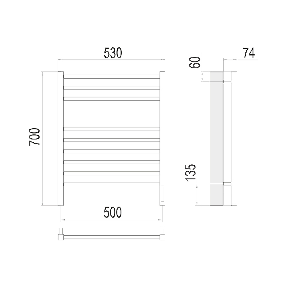 Оснащение : Полотенцесушитель, дистанционное крепление,модуль скрытого подключения,съемный кабель.