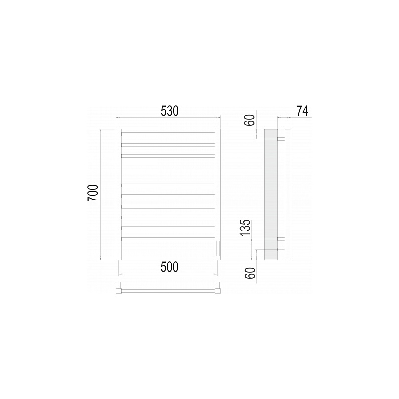 - Размер полотенцесушителя 53х70 см