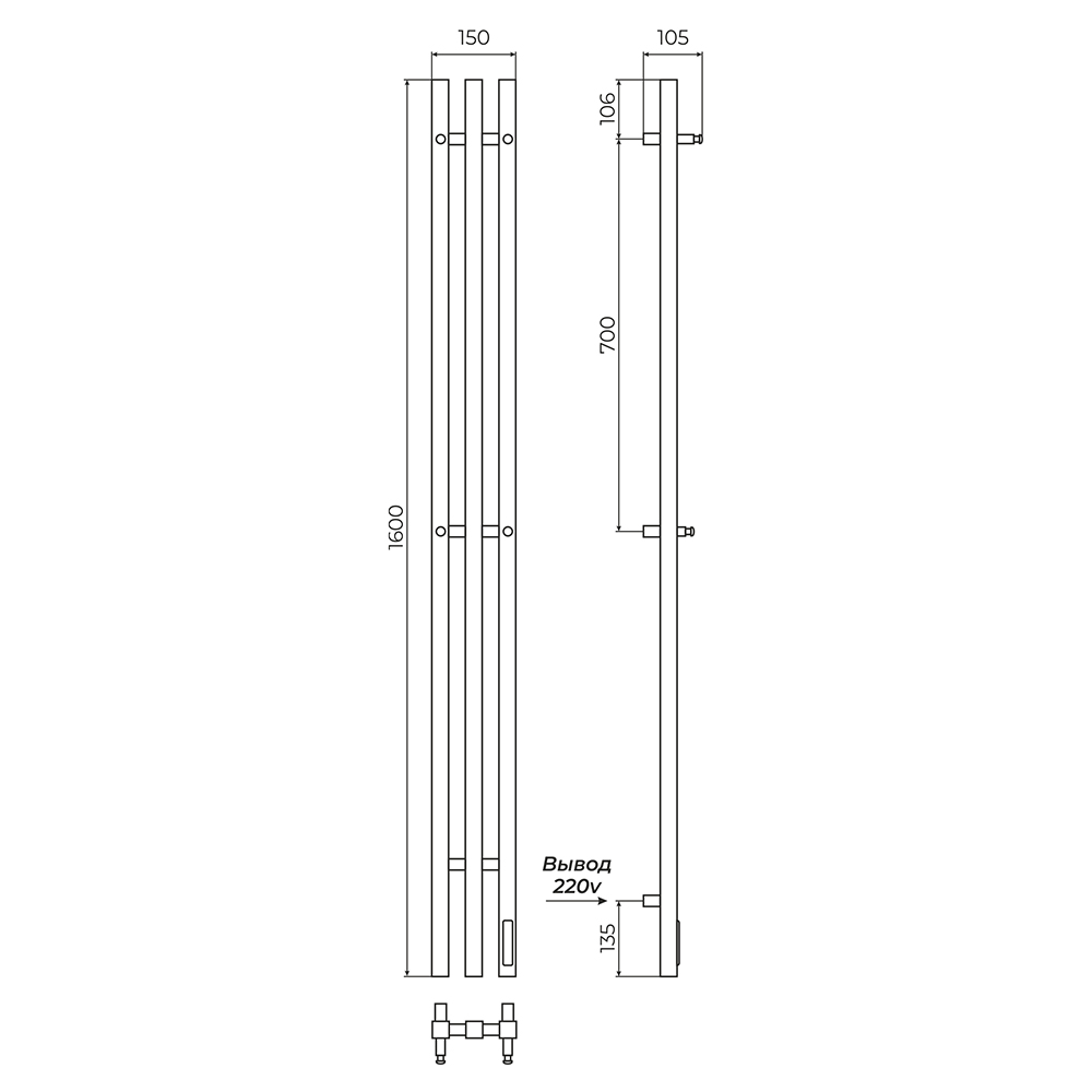 Полотенцесушитель электрический Terminus Tres sensor quick touch 4670078554673 160х15 см