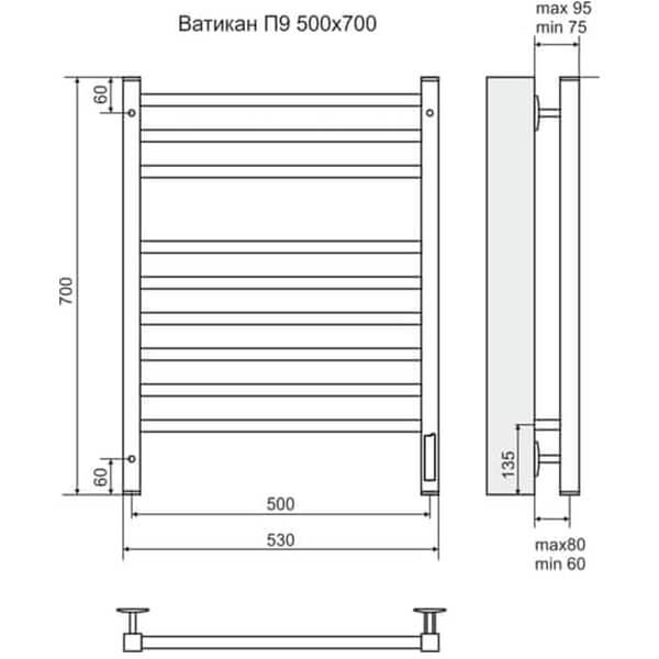 Полотенцесушитель электрический Terminus Ватикан П9 4670078512987 50х70 см