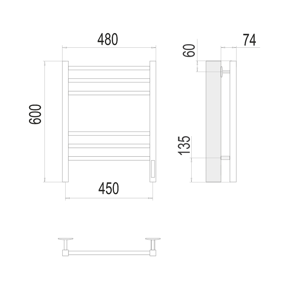 - Размер полотенцесушителя 48х60 см