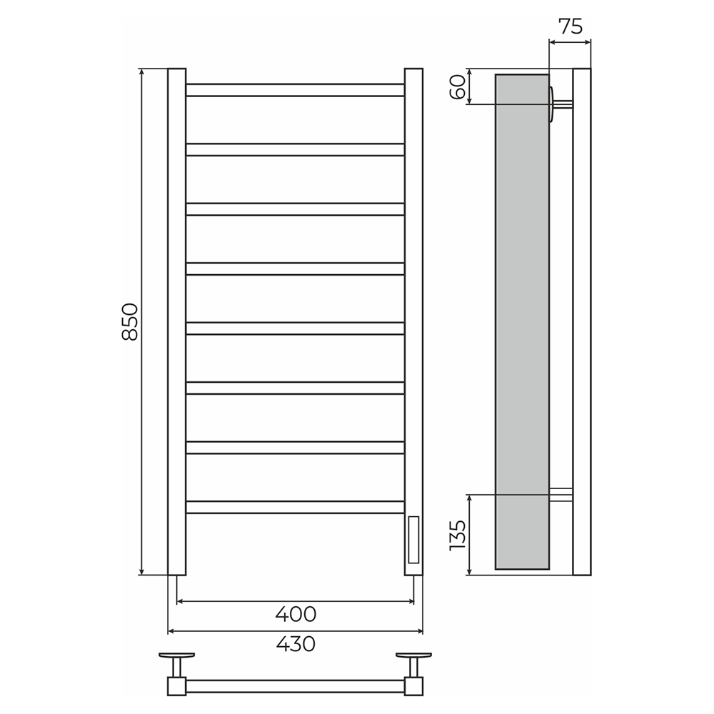 - Размер полотенцесушителя 43х85 см