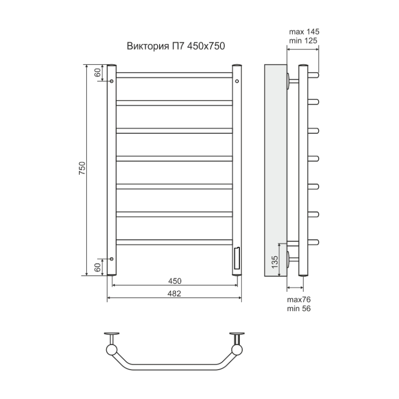 - Размер полотенцесушителя 48,2х75 см