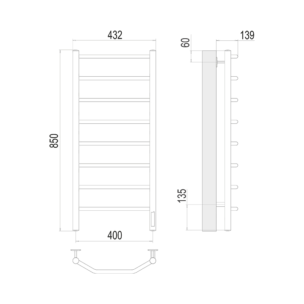 - Размер полотенцесушителя 43,2х85 см
