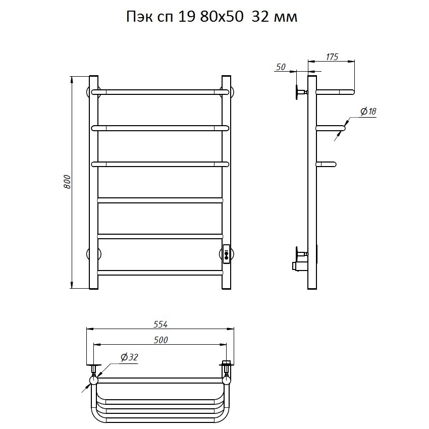 Полотенцесушитель электрический Тругор Трапеция 00-00031600 80х50 см