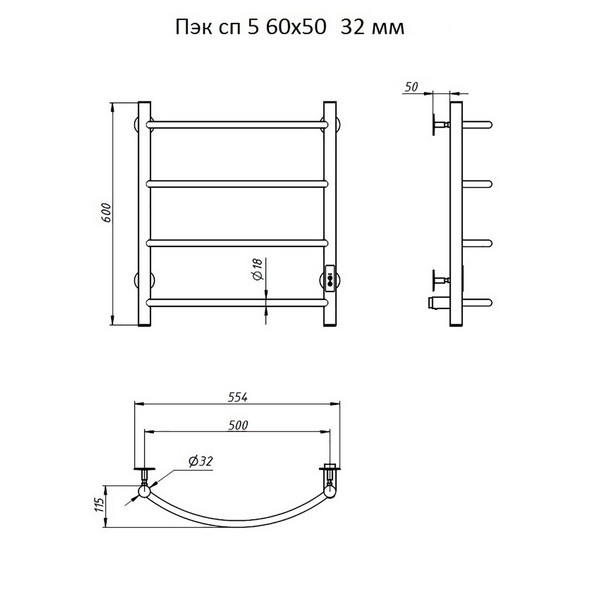 Полотенцесушитель электрический Тругор Дуга 00-00031605 60х50 см