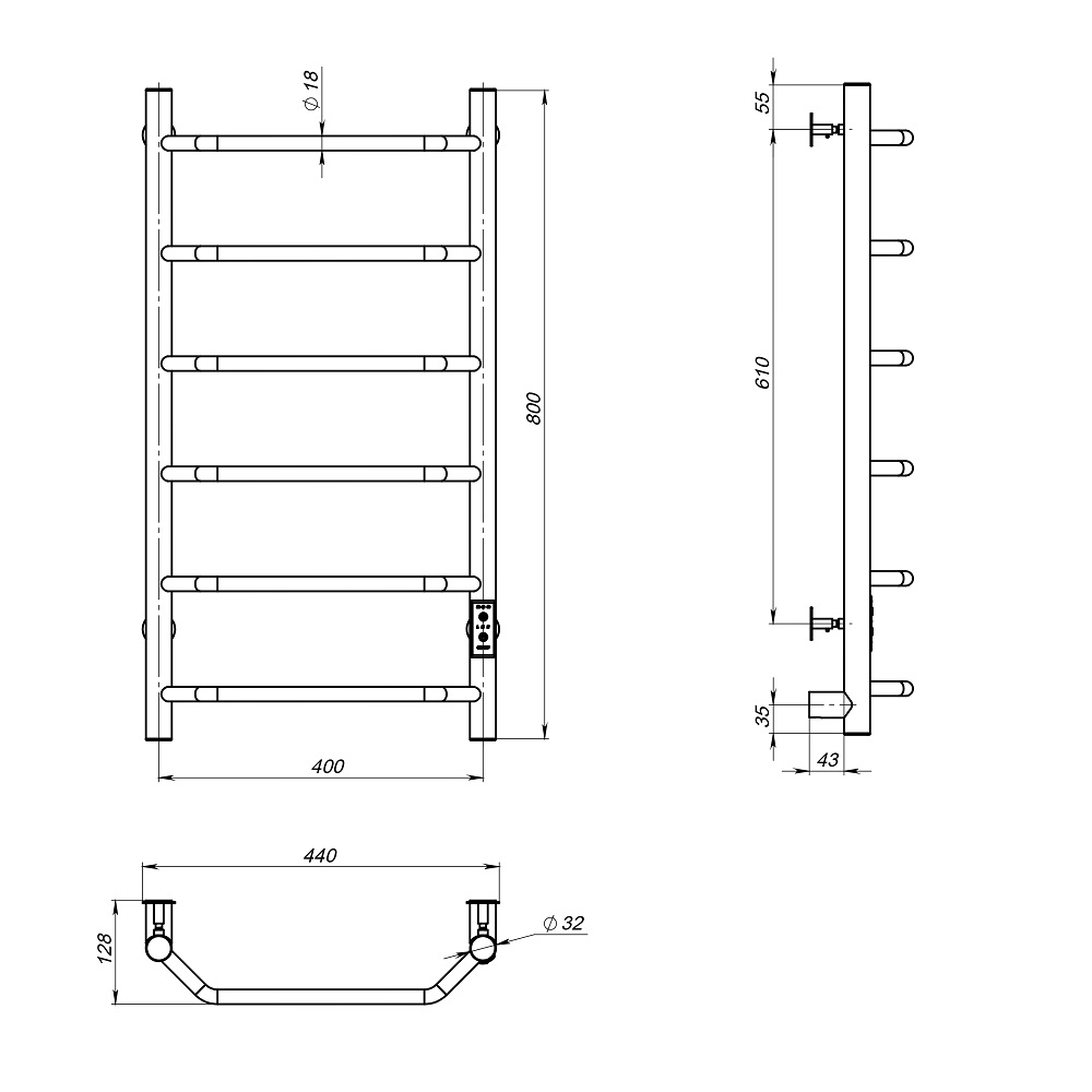 - Размер полотенцесушителя 44х80 см