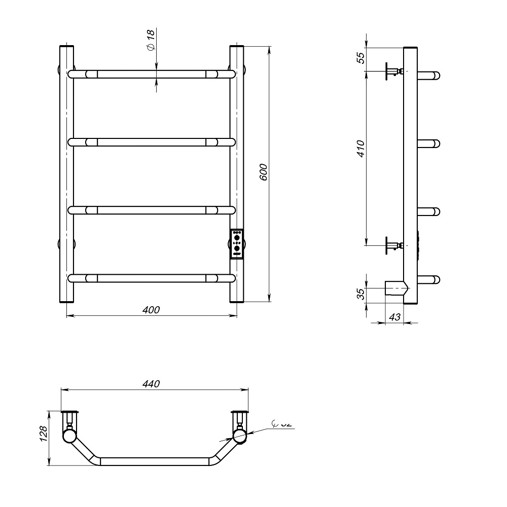 Полотенцесушитель электрический Тругор Трапеция 00-00031616 60х40 см