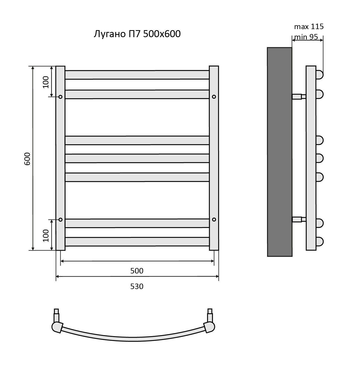 Полотенцесушитель водяной Aquatek Лугано П7 AQ DOC0760BL 50х60 см