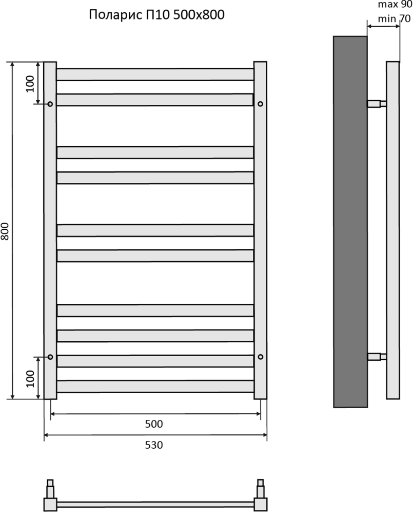 Простота установки: водяной полотенцесушитель легко монтируется на стену и подключается к системе горячего водоснабжения, что позволяет сэкономить время и силы на установку. Габарит выступа от стены регулируется телескопическими крепежами.