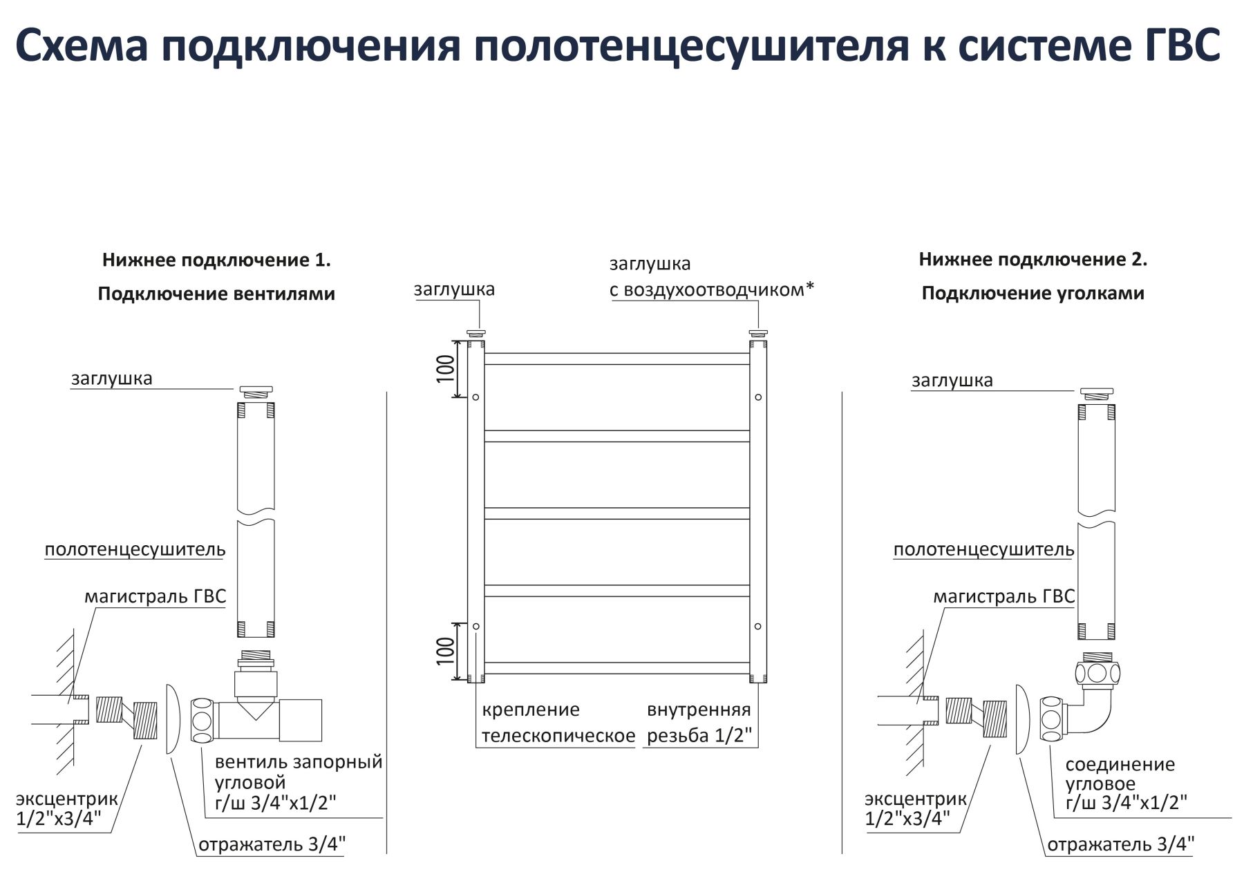 Полотенцесушитель водяной Aquatek Сириус П10 AQ DP1080BL 50х80 см