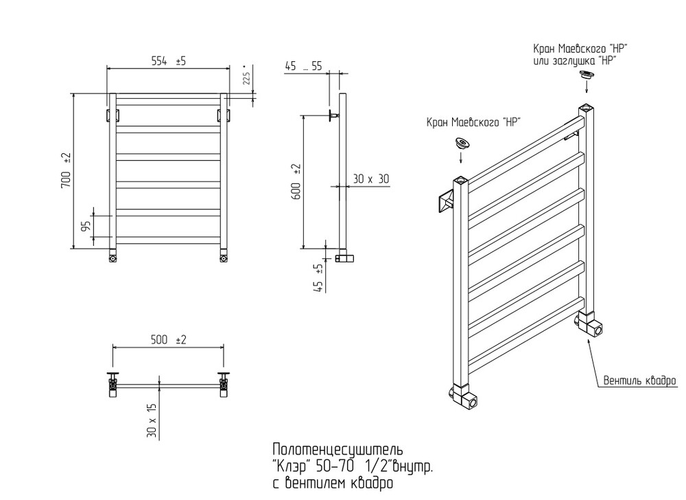 - Размер полотенцесушителя 50х70 см