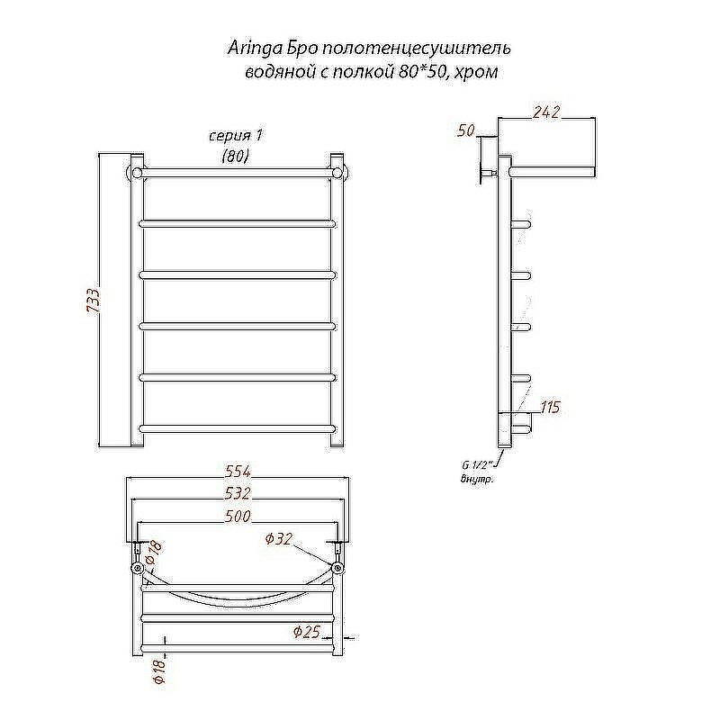 Полотенцесушитель водяной Aringa Бро AR03030CH 80х50 см