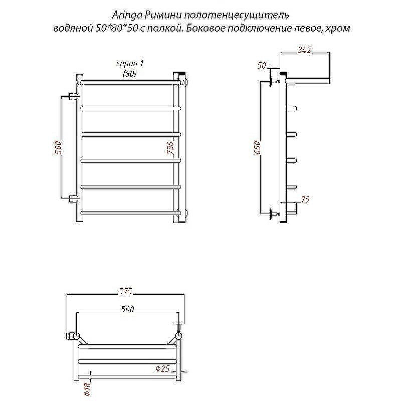 Полотенцесушитель водяной Aringa Римини AR03022CH 50х80 см